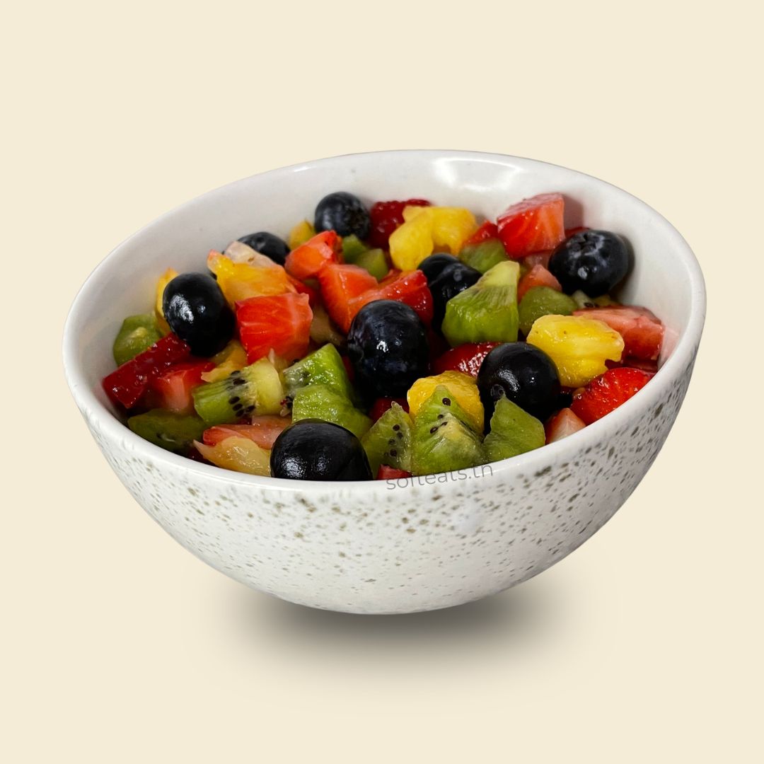 Un généreux bol de fruits frais de saison, soigneusement sélectionnés chaque jour selon les arrivages du marché et découpés à la main au moment de la commande. Fraises juteuses, kiwis fondants, myrtilles gorgées de saveur, ananas doré et autres fruits du moment se retrouvent délicatement mélangés pour un bol coloré, vitaminé et gourmand. Parce que les meilleurs fruits sont ceux de la saison, notre sélection change au fil des semaines pour vous garantir toujours le meilleur de la fraîcheur, livré directement chez vous à Tunis.