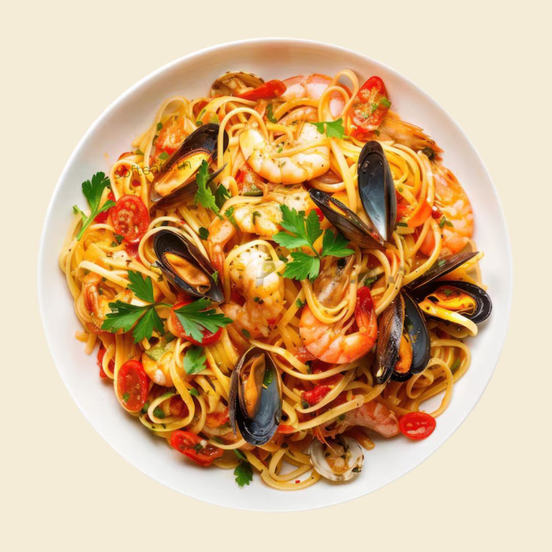 Savourez l'authenticité de l'Italie avec notre Spaghetti aux fruits de mer, un plat exquis mêlant des pâtes al dente à des fruits de mer fraîchement pêchés, le tout nappé d'une sauce tomate savoureuse et parfumée aux herbes méditerranéennes. Chaque bouchée est une invitation à un voyage culinaire au bord de la mer, où les saveurs marines se rencontrent avec la tendresse des pâtes pour un repas inoubliable.